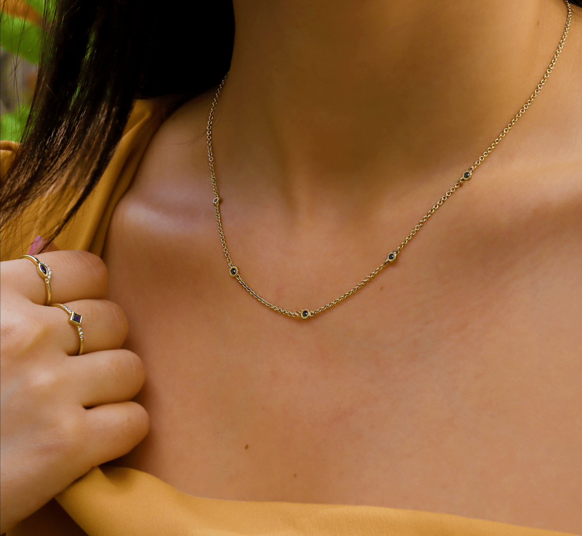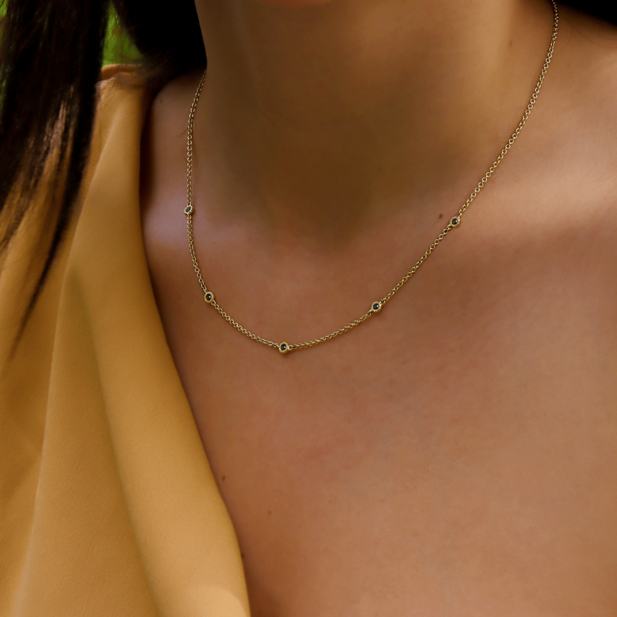 שרשרת מרשימה ויפיפיה משובצת ב5 יהלומים שחורים לאישה שאוהבת להרגיש הכי מיוחדת ושיקית