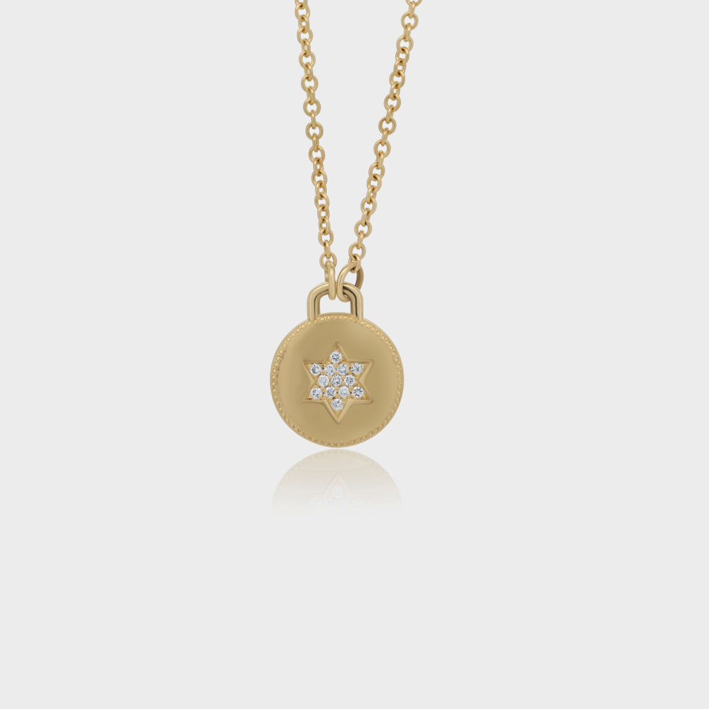 שרשרת זהב משובצת יהלום המשלבת בין תכשיט לאמנות. מעוטרת בחריטות של גלקסיה הנעשות בעבודת יד.