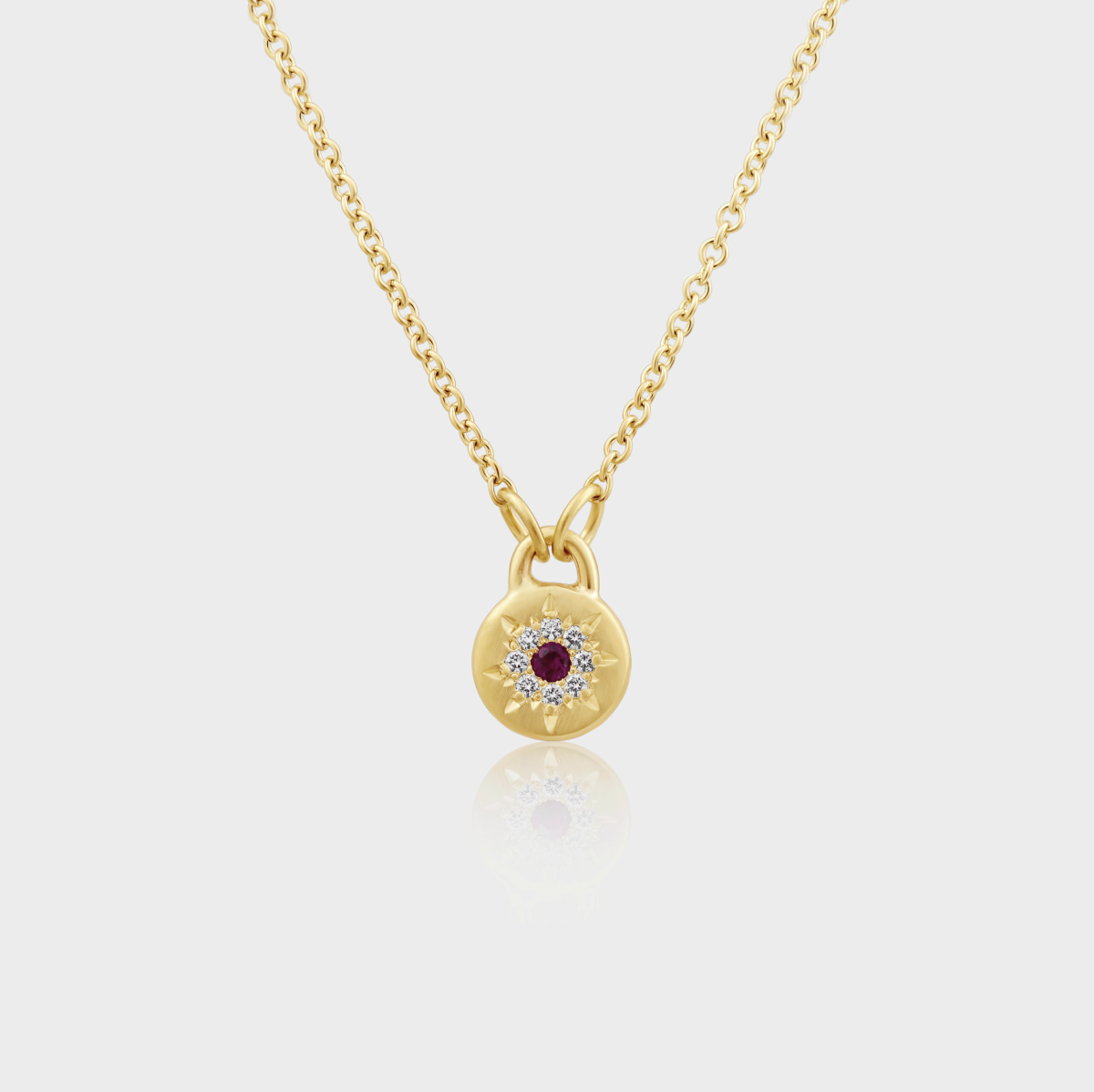 תליון זהב 14k יוקרתי ואומנותי משובץ באבן אודם טבעית, סמל לאהבה וסביבה ניצנוץ יהלומים