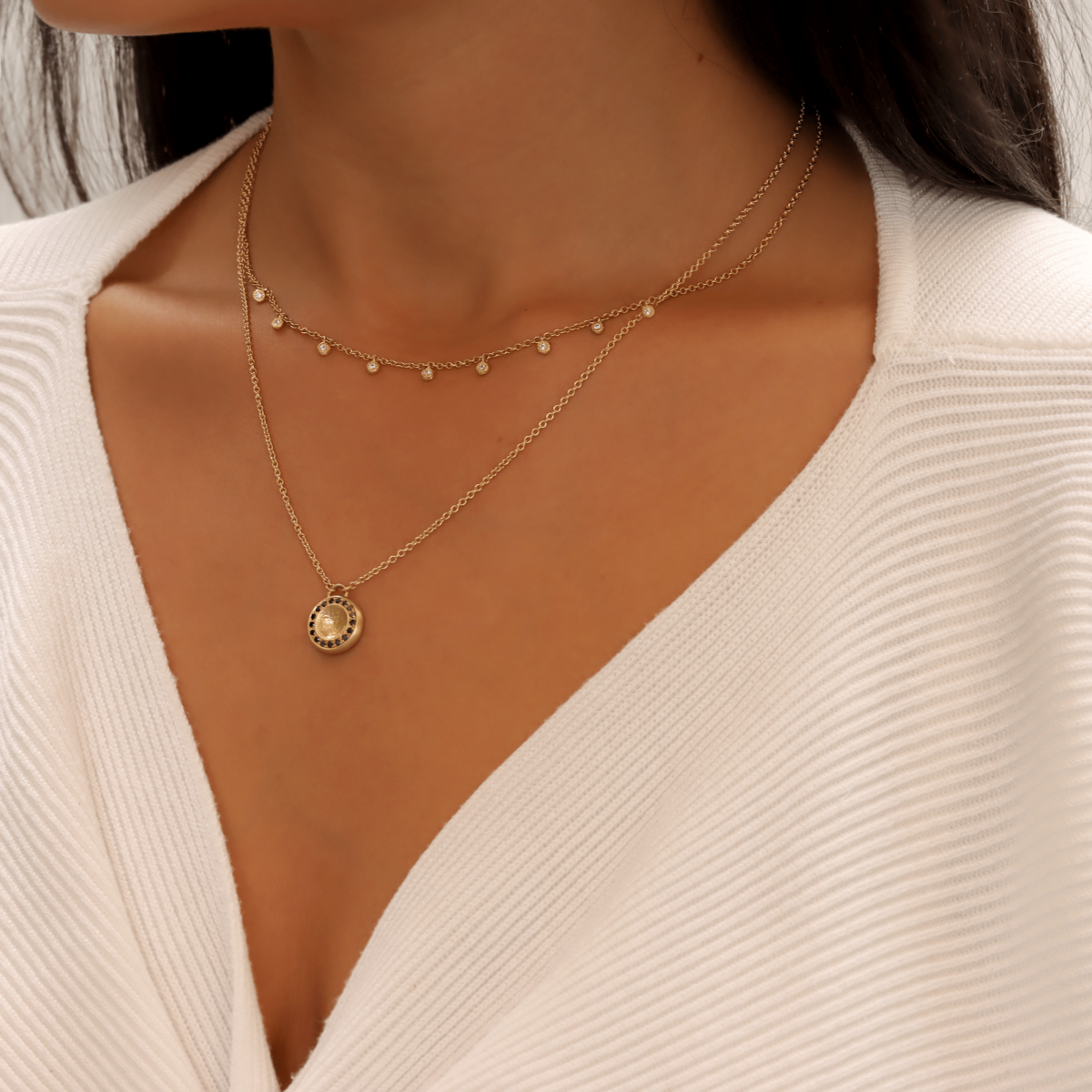 שרשרת זהב 14k משובצת יהלומים שחורים