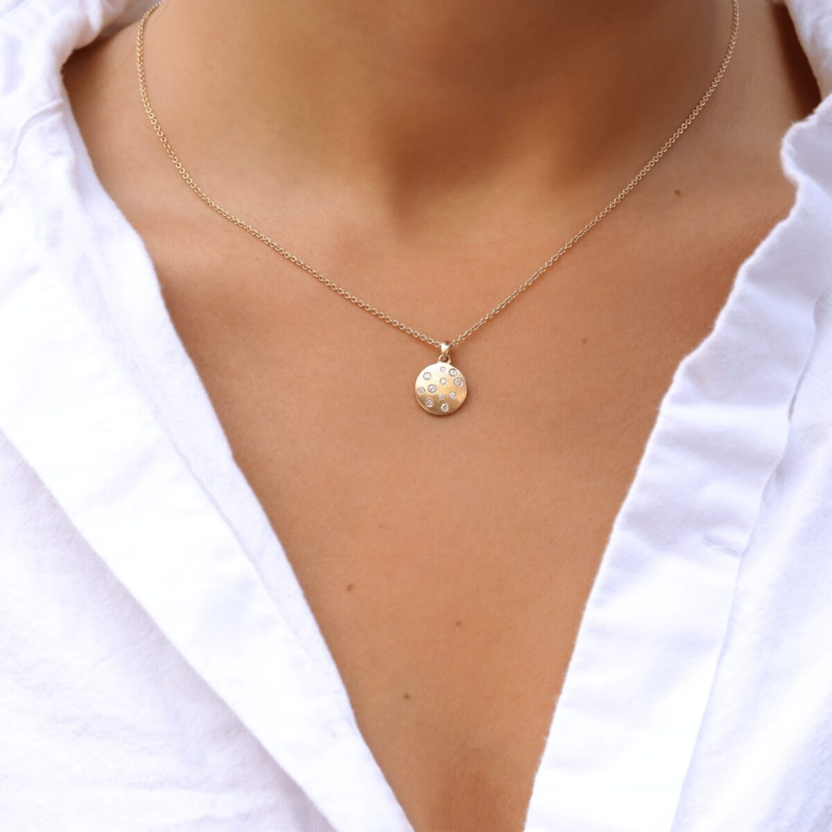 תליון מרשים בזהב 14k משובץ 10 יהלומים איכותיים ומנצנצים F VS1.