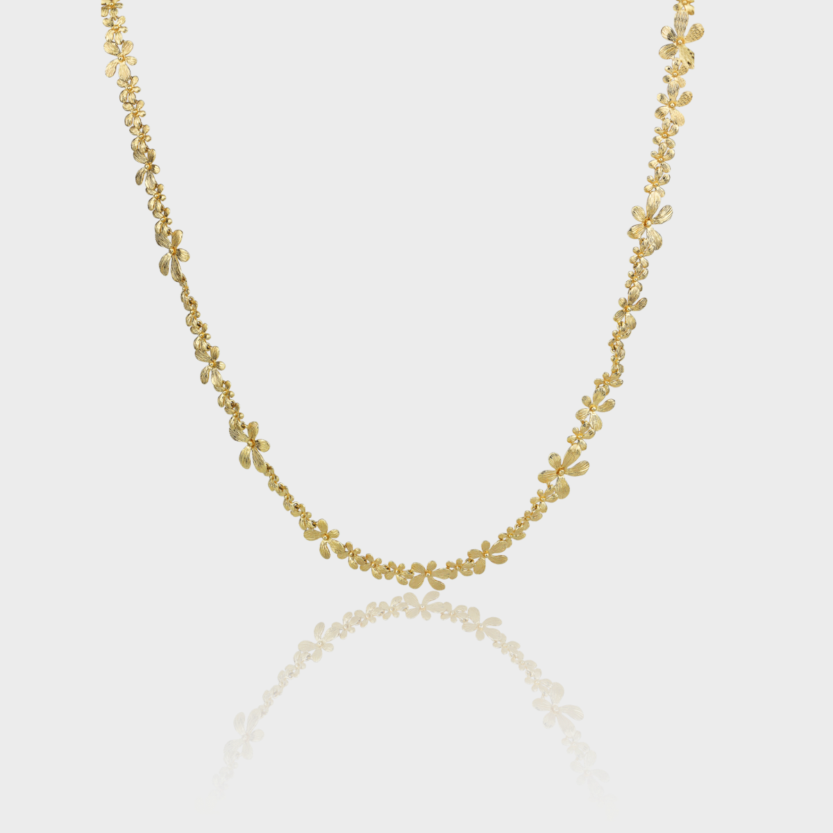 שרשרת זהב 18k עשויה כולה פרחים בעבודת יד עם חיבורים נסתרים. מראה ייחודי ויוקרתי שאי אפשר להתעלם ממנה.