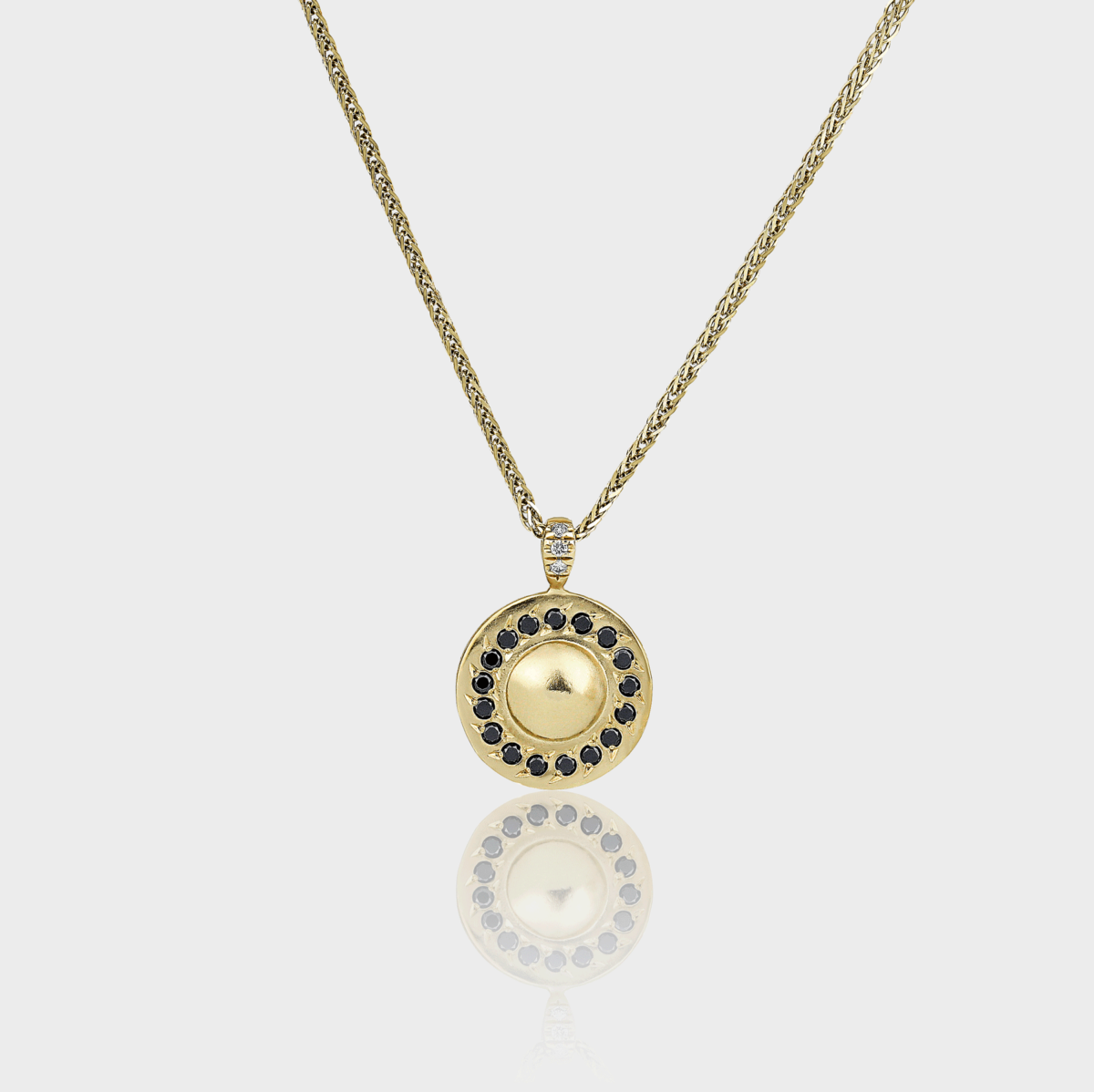 תליון זהב 14k בעבודת יד עם שיבוצים של יהלומים שחורים במעגל זרימה אינסופי