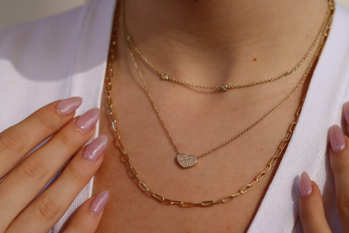 לב מלא יוקרתי משובץ 45 יהלומים איכותיים F VS1. תכשיט קלאסי על-זמני.