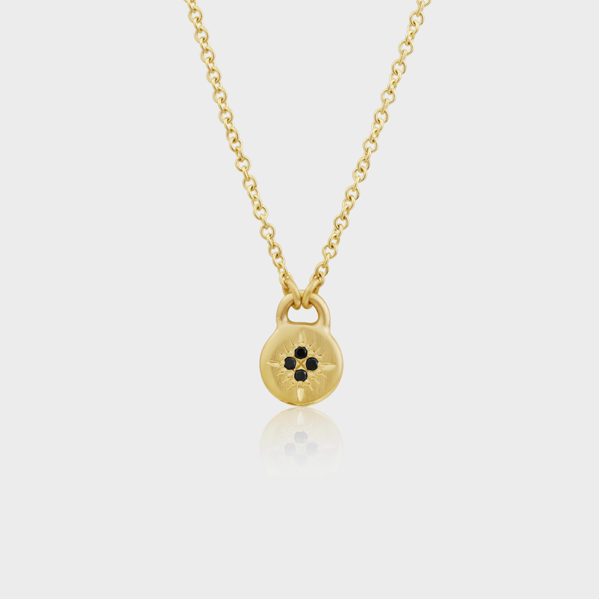 שרשרת זהב 14k מעוצבת משובצת 4 יהלומים שחורים במשקל כולל של 0.02 קרט. שיבוץ השרשרת מעניק לה מראה ייחודי ונעשה כמובן בעבודת יד מדויקת תוך הוספת אלמנטים של משולשים וצורות גיאומטריות החצובות בזהב.
