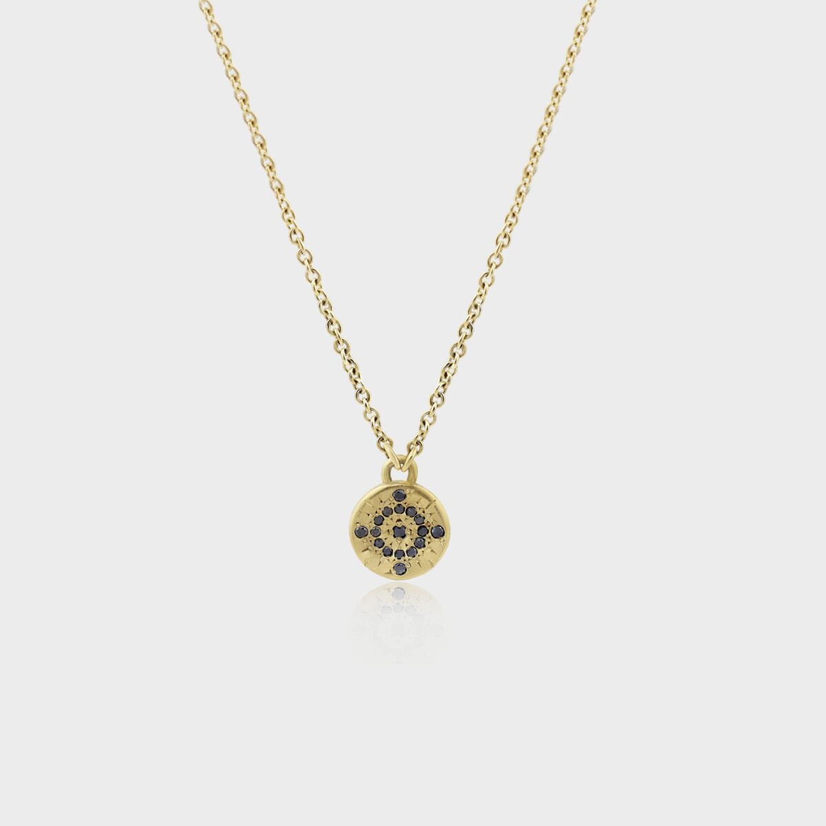 שרשרת זהב 14k מעוצבת משובצת 17 יהלומים שחורים במשקל כולל של 0.145 קרט. שיבוץ השרשרת מעניק לה מראה ייחודי ונעשה כמובן בעבודת יד מדויקת תוך הוספת אלמנטים של משולשים וצורות גיאומטריות החצובות בזהב.