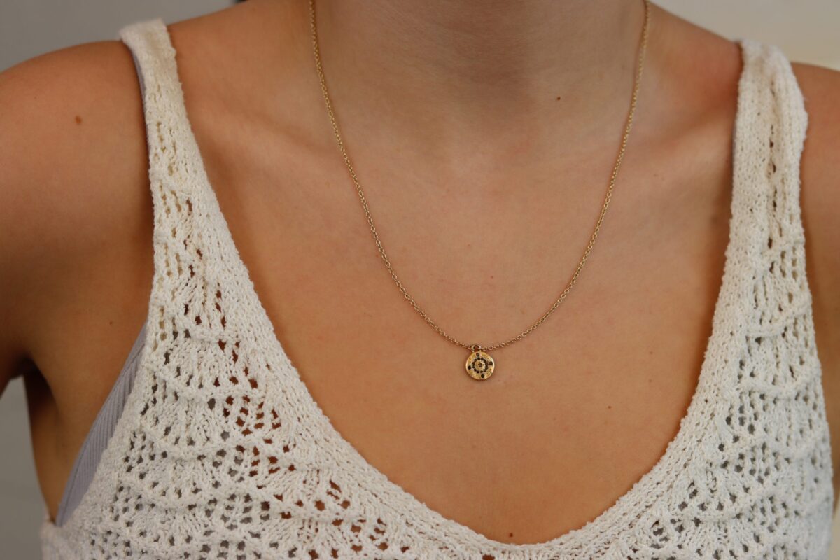 שרשרת זהב 14 קרט ויהלומים שחורים