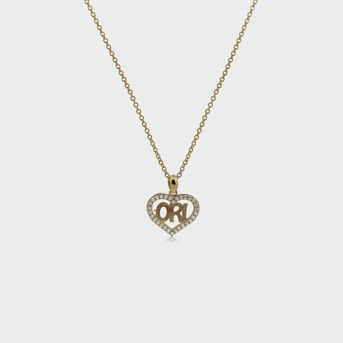 שרשרת זהב 14k עם שמך או עם שם בן האדם הקרוב אלייך שאותו תרצי לשאת איתך לכל מקום ומסביב מסגרת לב מנצנצת ב 30 יהלומים איכותיים.